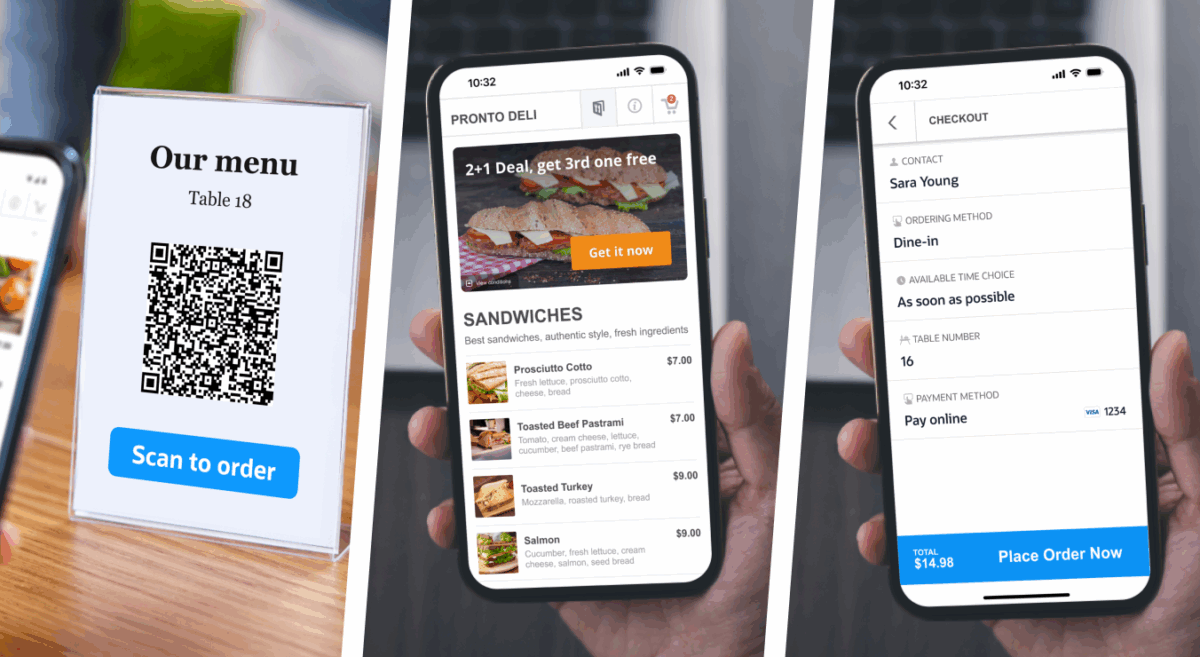 - You create a QR code menu flyer and stick it on every table;